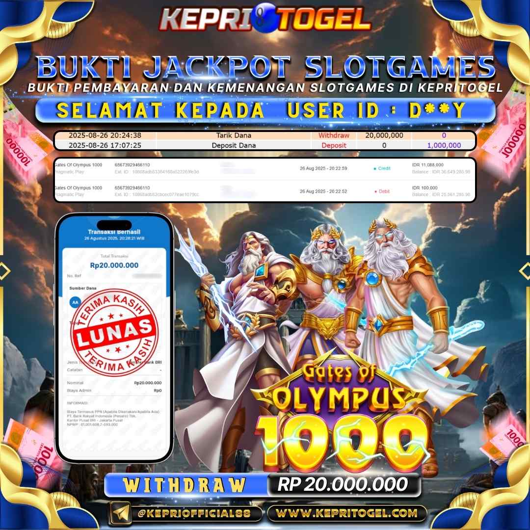 Selamat kepada UserId D**y telah berhasil mendapatkan kemenangan jackpot pada permainan Slot Gates of Olympus 1000 Kepritogel sebesar Rp20,000,000,-. Kepritogel situs terpercaya sejak dulu hingga saat ini , Untuk kemenangan berapapun pasti akan kami bayarkan . Jangan ragu bermain di Kepri Togel . Kami pihak Kepritogel Menyampaikan terima kasih kepada seluruh member Kepri Togel yang telah Percaya dan setia Bersama kami bermain di Kepritogel hingga saat ini.