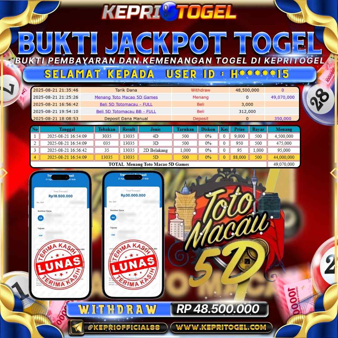 Kepritogel Jackpot Togel Toto Macau 5D Rp48,500,000