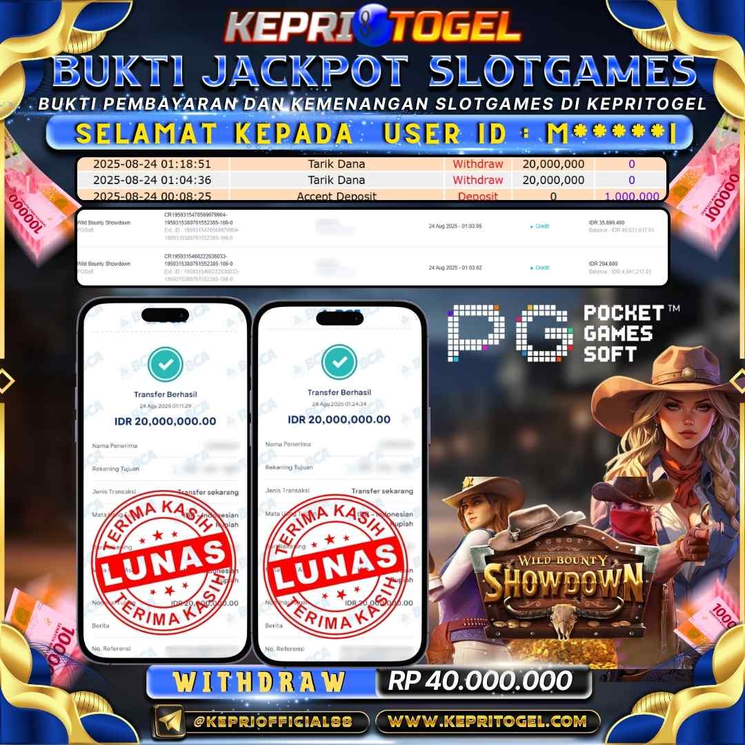 Selamat kepada UserId M*****I telah berhasil mendapatkan kemenangan jackpot pada permainan Slot Wild Bounty Showdown Kepritogel sebesar Rp40,000,000,- . Kepritogel situs terpercaya sejak dulu hingga saat ini , Untuk kemenangan berapapun pasti akan kami bayarkan . Jangan ragu bermain di Kepri Togel . Kami pihak Kepritogel Menyampaikan terima kasih kepada seluruh member Kepri Togel yang telah Percaya dan setia Bersama kami bermain di Kepritogel hingga saat ini.