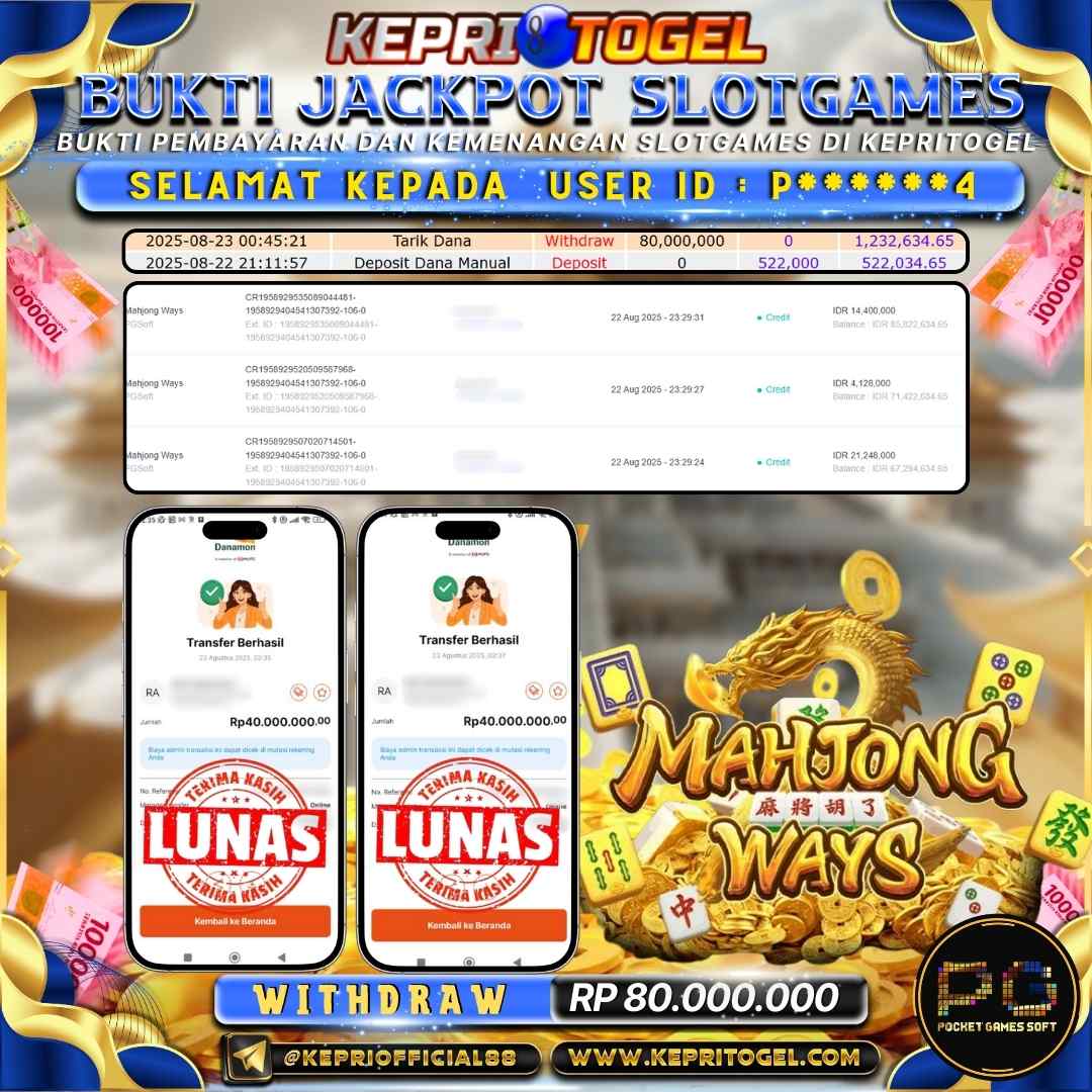 Kepritogel Jackpot Slot Mahjong Ways Rp80,000,000
