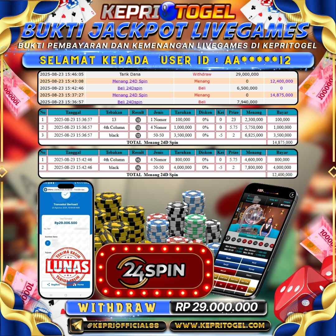 Kepritogel Jackpot Live Game 24D spin Rp29,000,000