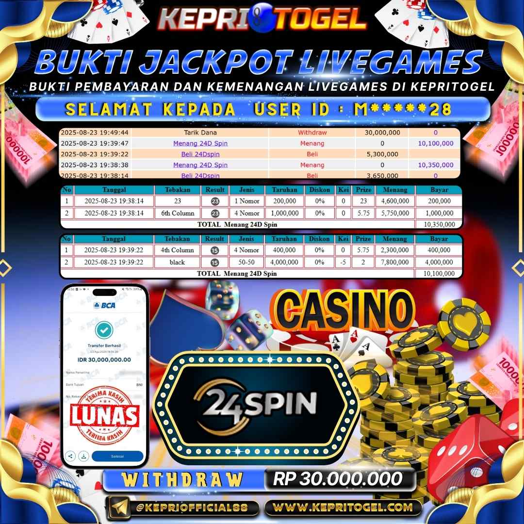 Kepritogel Jackpot Live Game 24D spin Rp30,000,000