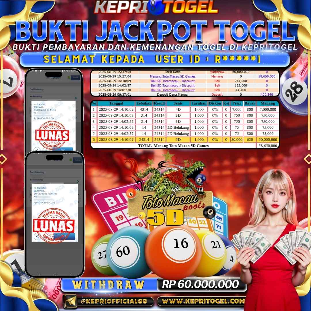 Kepritogel Jackpot Togel Toto Macau 5D Rp60,000,000