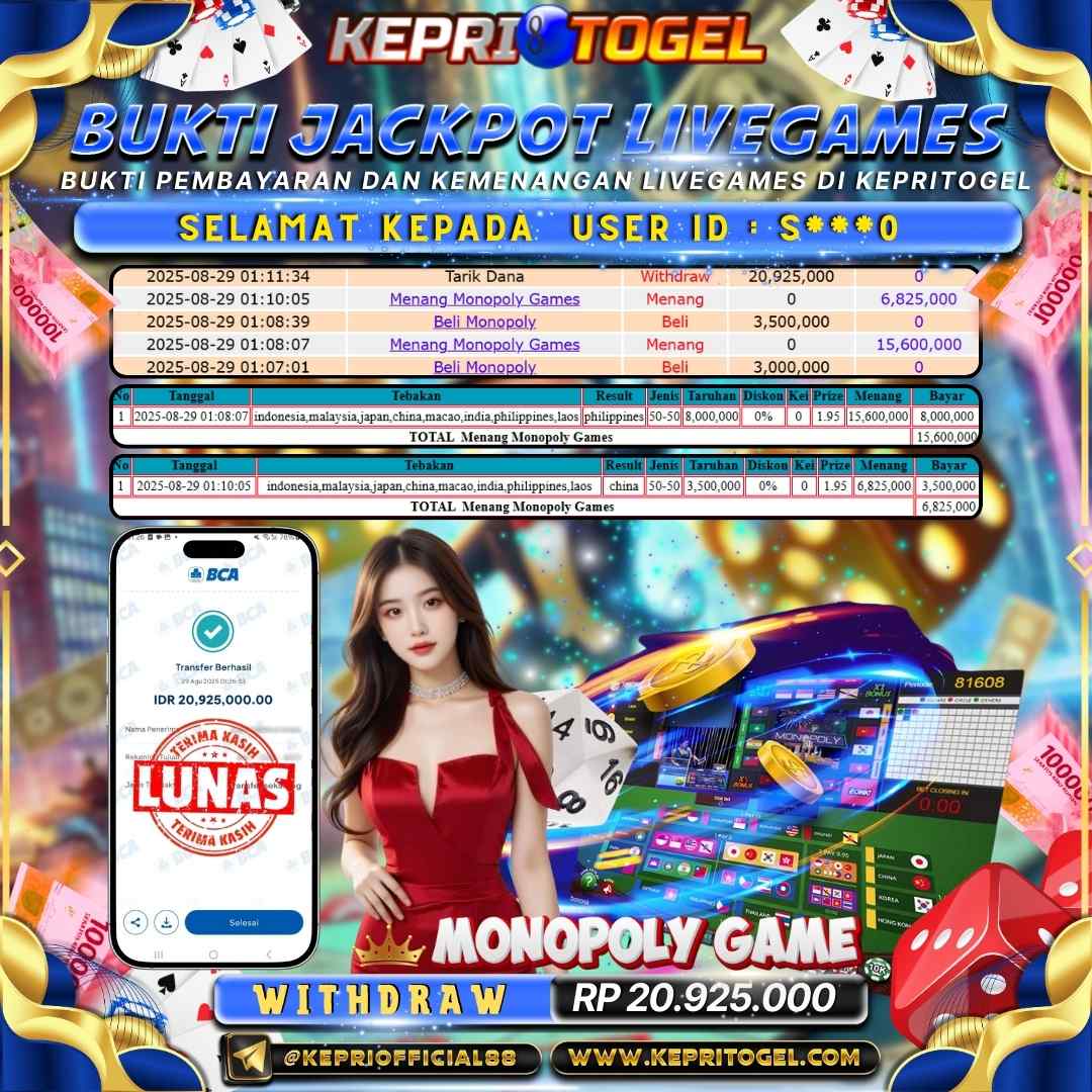 Kepritogel Jackpot Live Game Monopoly Rp20,925,000