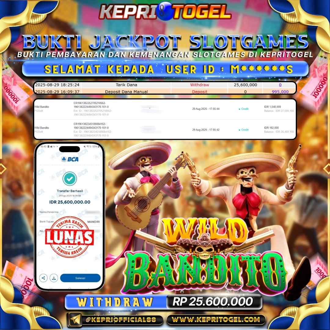Kepritogel Jackpot Slot Wild Bandito Rp25,600,000