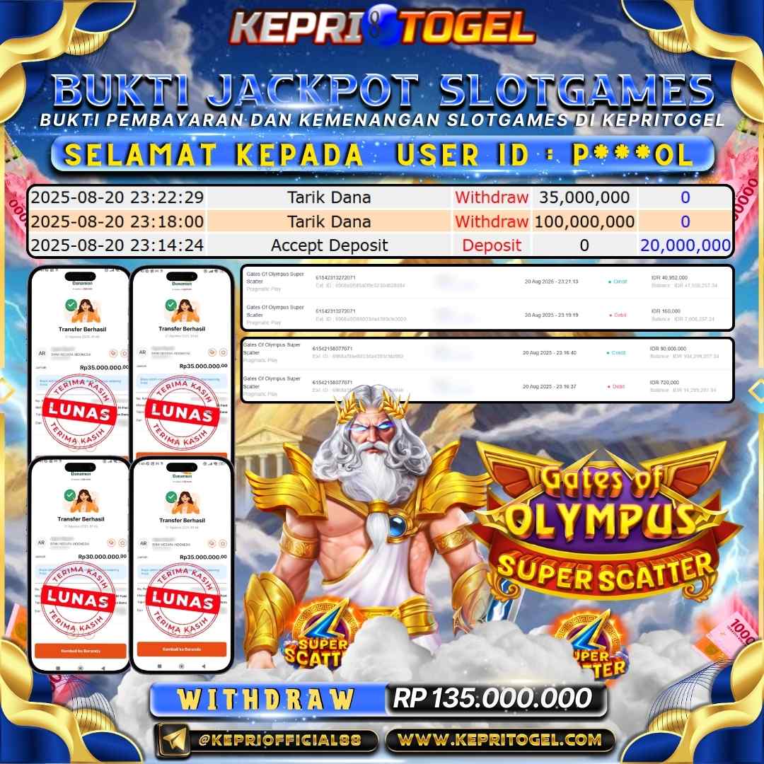 Kepritogel Jackpot Slot Gates Of Olympus Super Scatter Rp135,000,000
