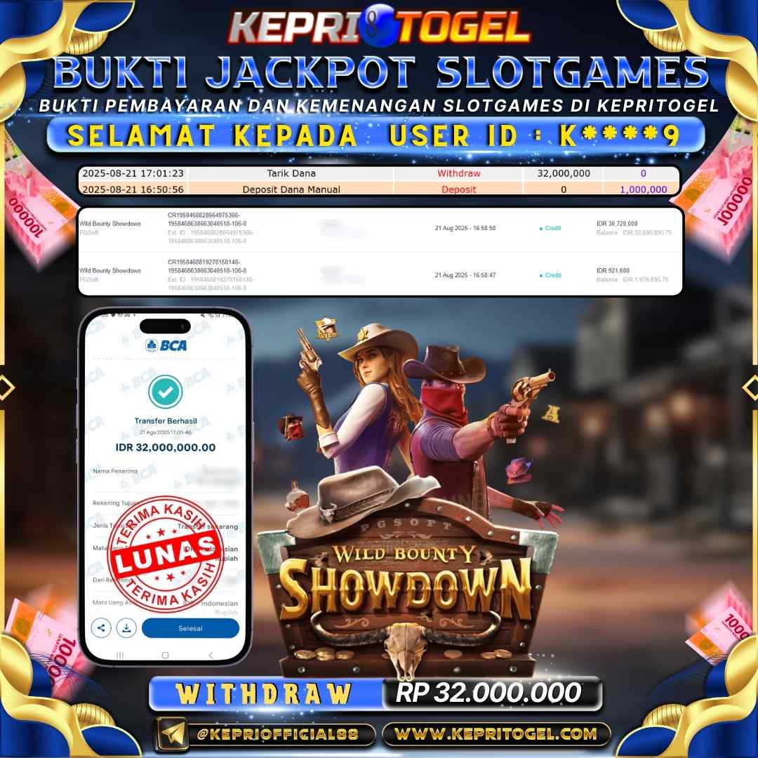 Selamat kepada UserId K****9 telah berhasil mendapatkan kemenangan jackpot pada permainan Slot Wild Bounty Showdown Kepritogel sebesar Rp32,000,000,- . Kepritogel situs terpercaya sejak dulu hingga saat ini , Untuk kemenangan berapapun pasti akan kami bayarkan . Jangan ragu bermain di Kepri Togel . Kami pihak Kepritogel Menyampaikan terima kasih kepada seluruh member Kepri Togel yang telah Percaya dan setia Bersama kami bermain di Kepritogel hingga saat ini.