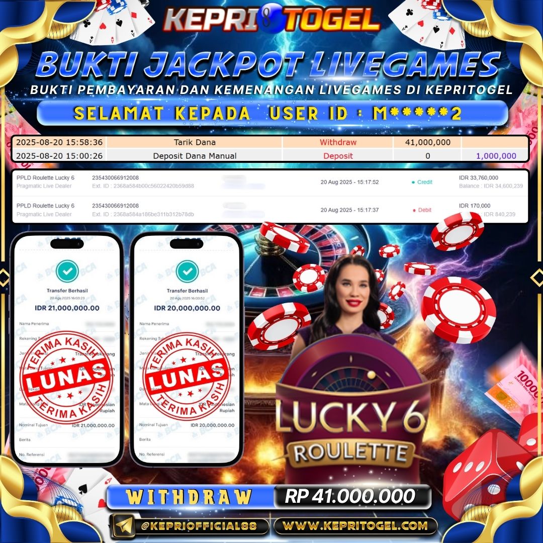 Kepritogel Jackpot Live Game PPLD Roulette Lucky 6 Rp41,000,000