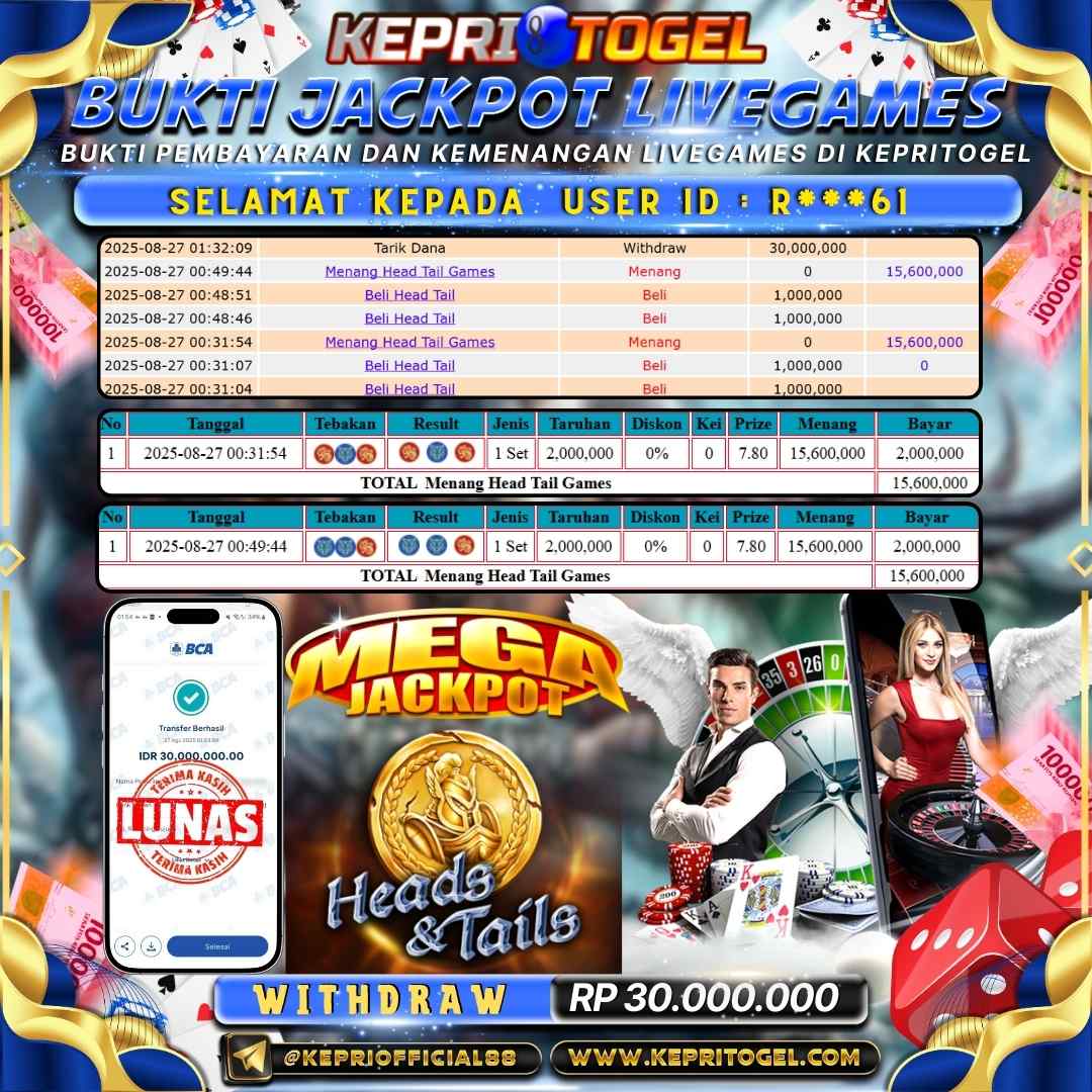 Kepritogel Jackpot Live Game Head tail Rp30,000,000