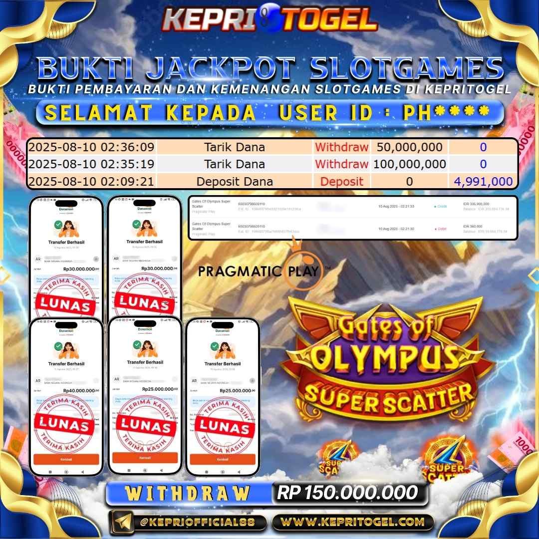 Kepritogel Jackpot Slot Gates Of Olympus Super Scatter Rp150,000,000