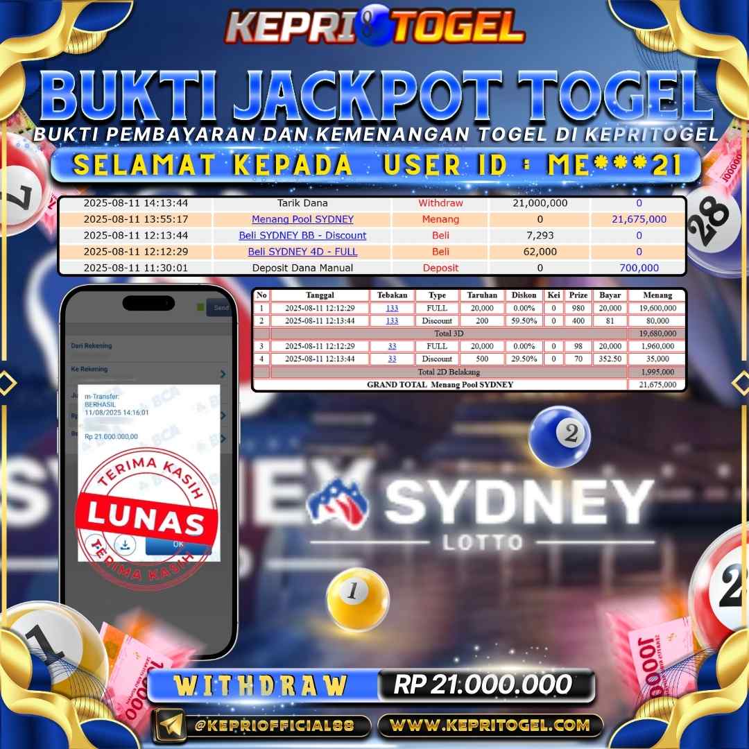 Kepritogel Jackpot Togel SYDNEY LOTTO Rp21,000,000