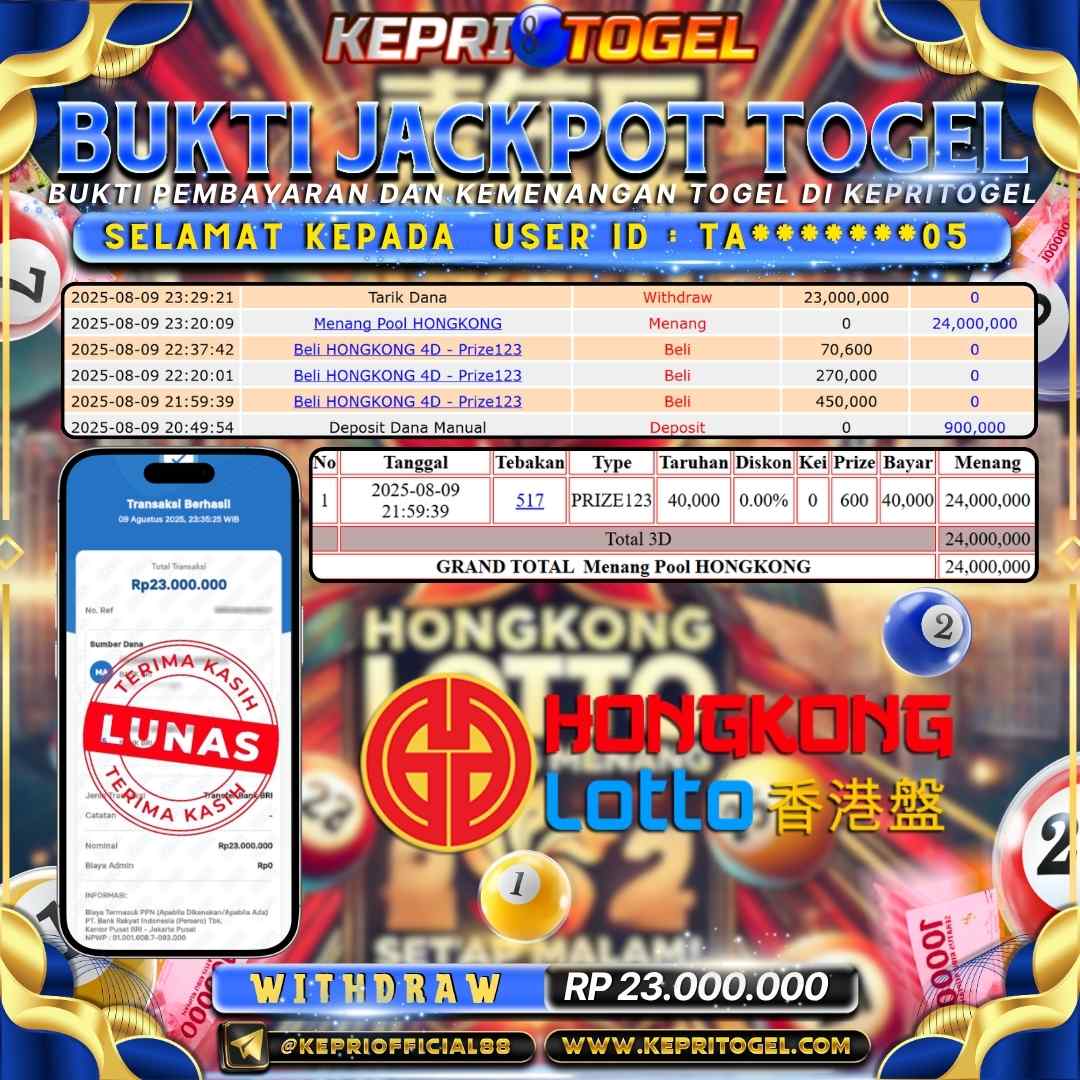Kepritogel Jackpot Togel Hongkong Lotto Rp23,000,000
