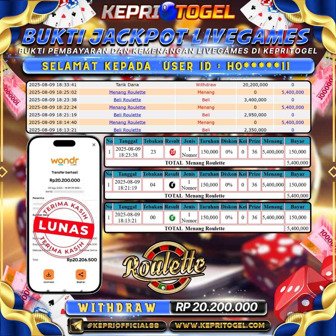 Kepritogel Jackpot Live Game Roulette Rp20,200,000