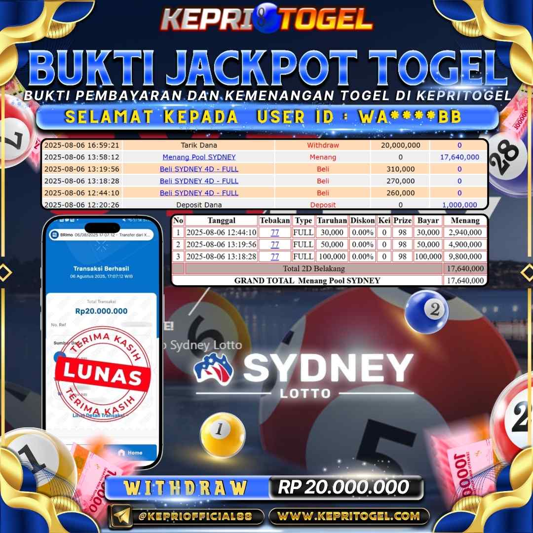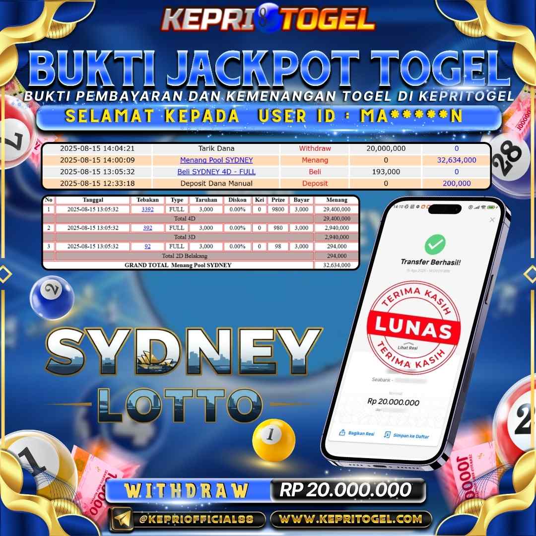 Kepritogel Jackpot Togel SYDNEY LOTTO Rp20,000,000