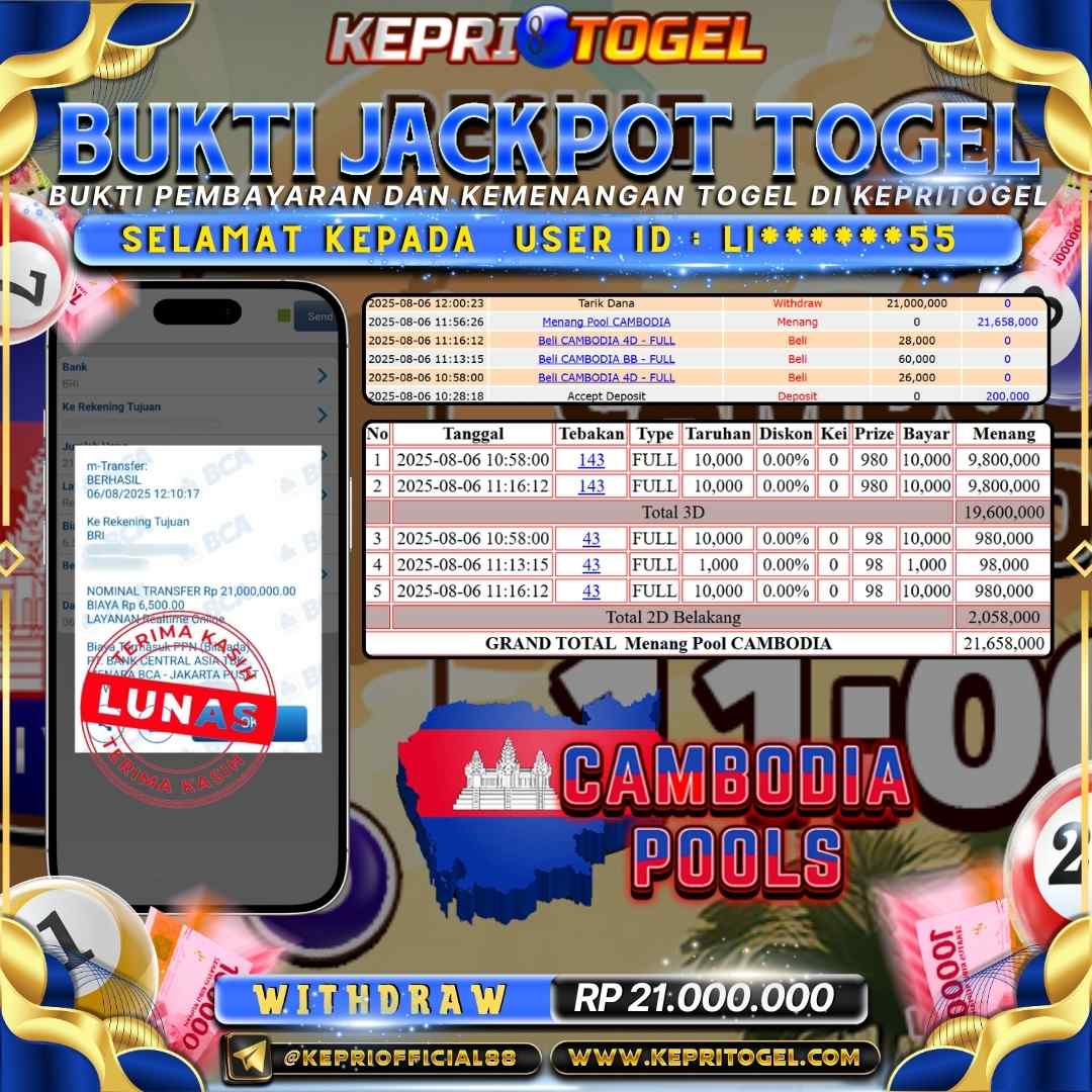 Kepritogel Jackpot Togel CAMBODIA POOLS Rp21,000,000