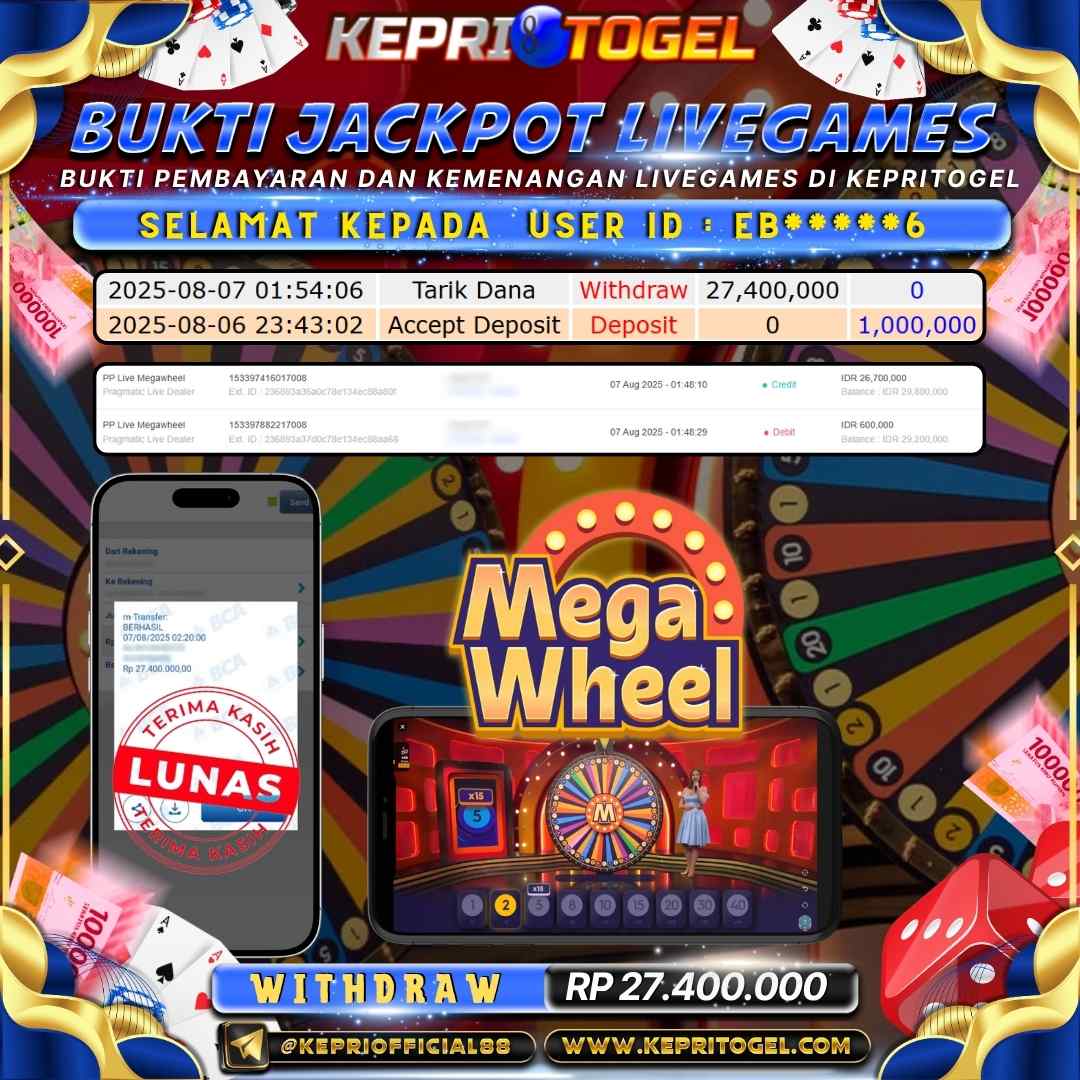 Kepritogel Jackpot Live Game Mega Wheel Rp27,400,000
