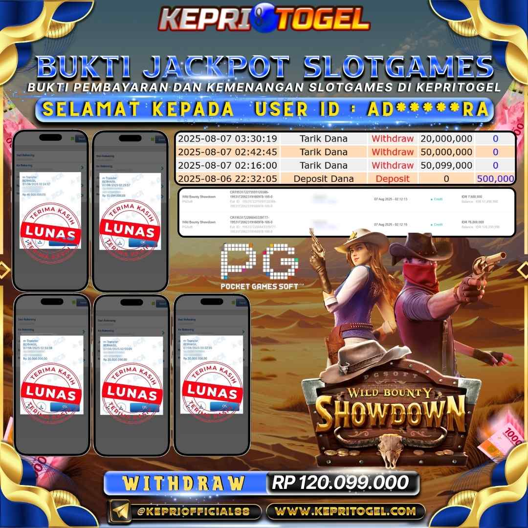 Selamat kepada UserId AD*****RA telah berhasil mendapatkan kemenangan jackpot pada permainan Slot Wild Bounty Showdown Kepritogel sebesar Rp120,099,000,- . Kepritogel situs terpercaya sejak dulu hingga saat ini , Untuk kemenangan berapapun pasti akan kami bayarkan . Jangan ragu bermain di Kepri Togel . Kami pihak Kepritogel Menyampaikan terima kasih kepada seluruh member Kepri Togel yang telah Percaya dan setia Bersama kami bermain di Kepritogel hingga saat ini