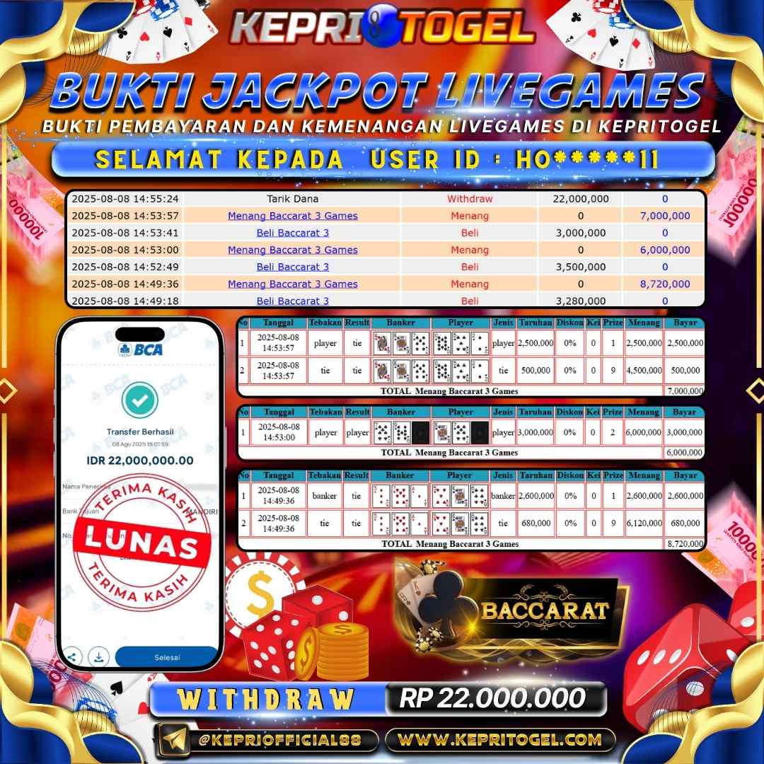 Kepritogel Jackpot Live Game Baccarat 3 Rp22,000,000