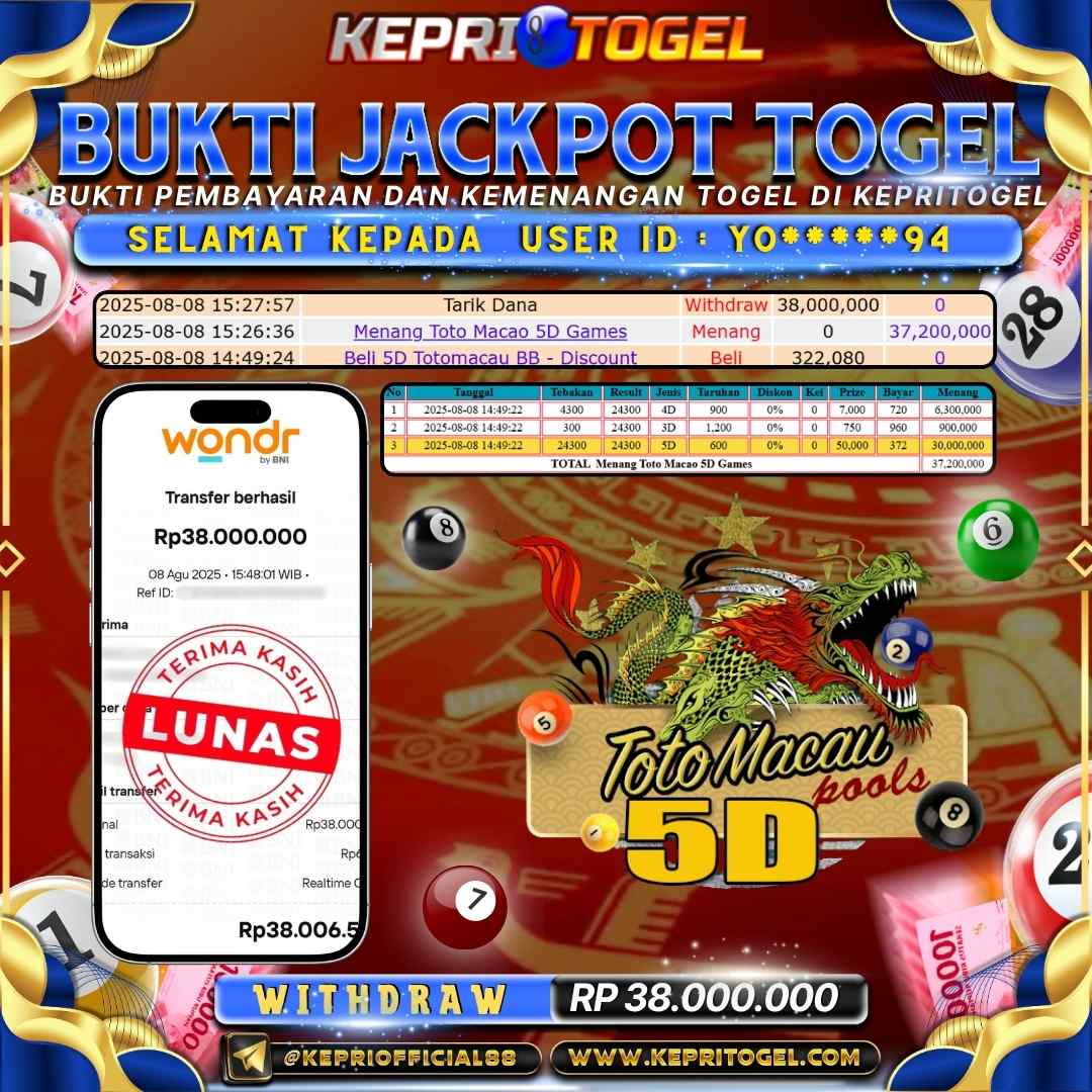 Kepritogel Jackpot Togel Toto Macau 5D Rp38,000,000