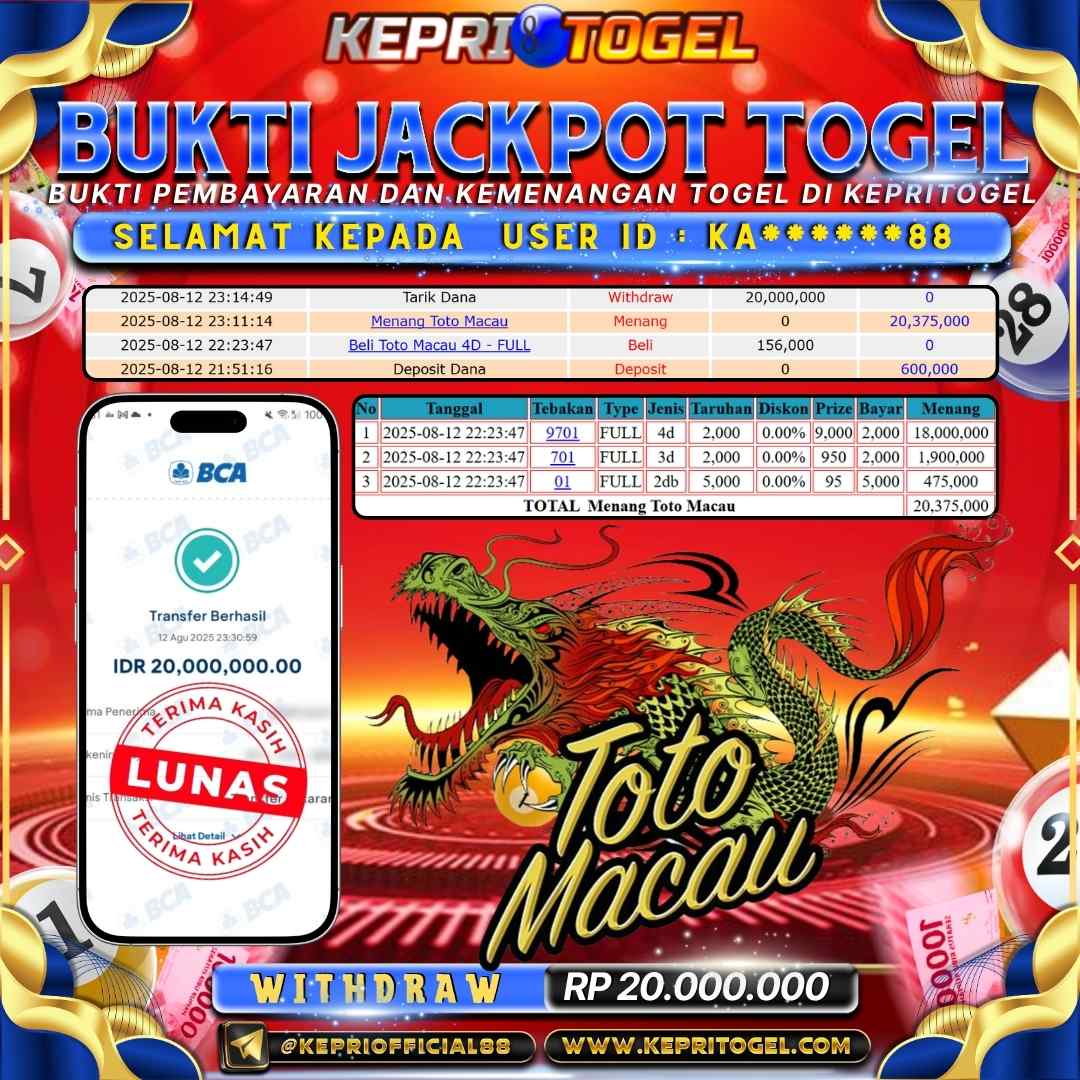 Kepritogel Jackpot Togel Toto Macau Rp20,000,000