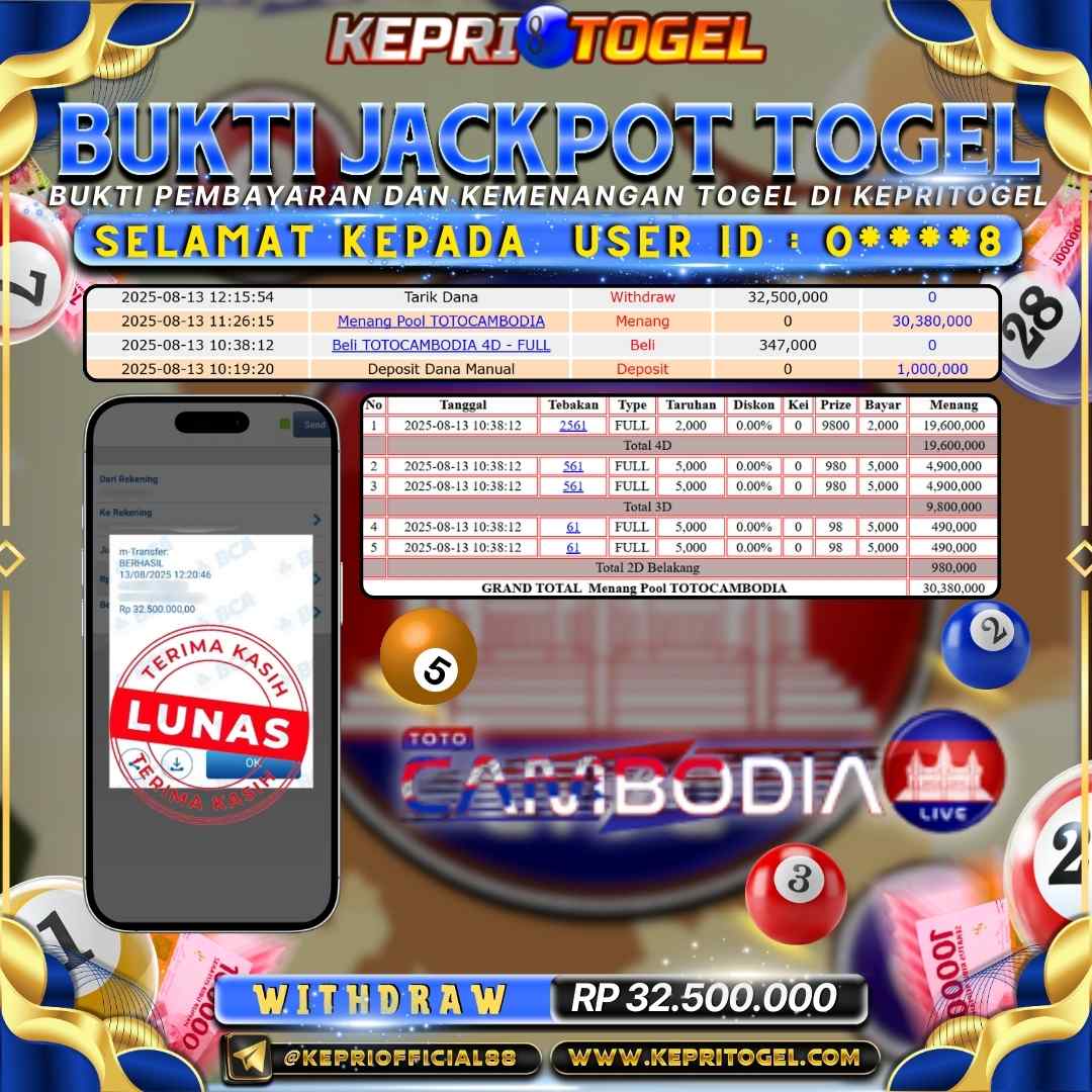 Kepritogel Jackpot Togel TOTOCAMBODIA Rp32,500,000