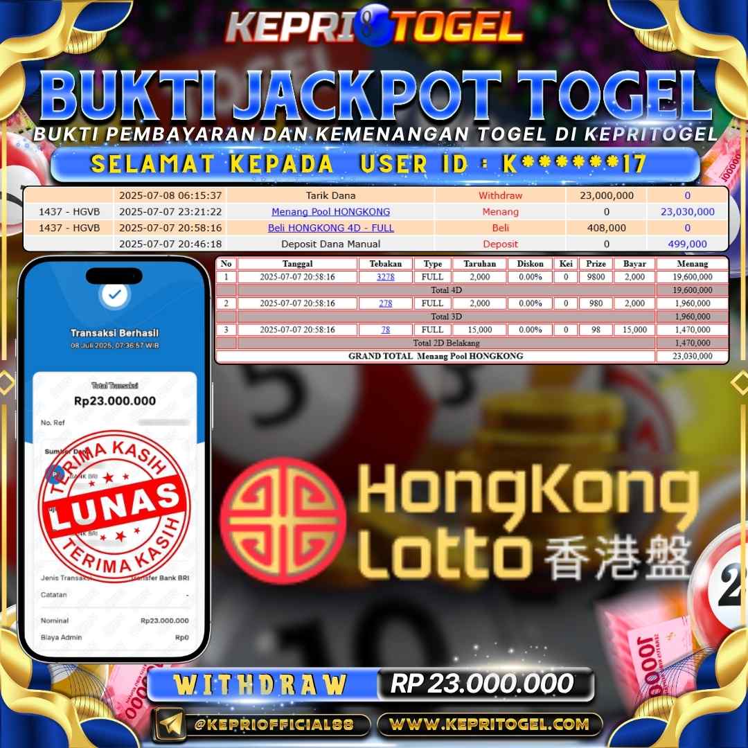 Kepritogel Jackpot Togel Hongkong Lotto Rp23,000,000