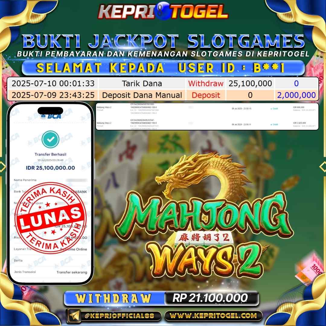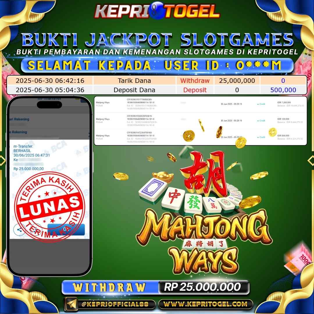 Kepritogel Jackpot Slot Mahjong Ways Rp25,000,000