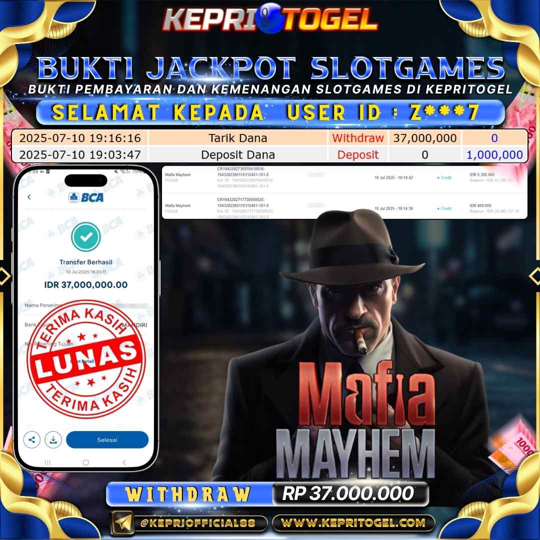 Selamat kepada UserId Z***7 telah berhasil mendapatkan kemenangan jackpot pada permainan Mafia Slot Mayhem Kepritogel sebesar Rp37,000,000,- . Kepritogel situs terpercaya sejak dulu hingga saat ini , Untuk kemenangan berapapun pasti akan kami bayarkan . Jangan ragu bermain di Kepri Togel . Kami pihak Kepritogel Menyampaikan terima kasih kepada seluruh member Kepri Togel yang telah Percaya dan setia Bersama kami bermain di Kepritogel hingga saat ini.
