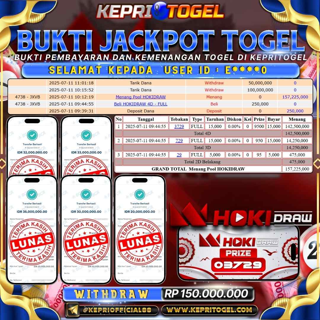 Kepritogel Jackpot Togel HOKIDRAW Rp150,000,000