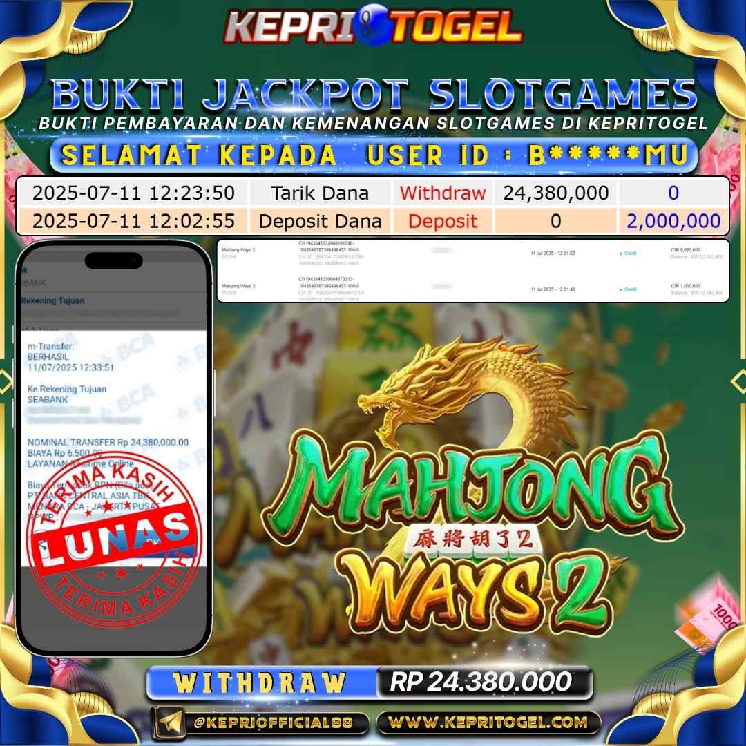 Kepritogel Jackpot Slot Mahjong Ways 2 Rp24,380,000