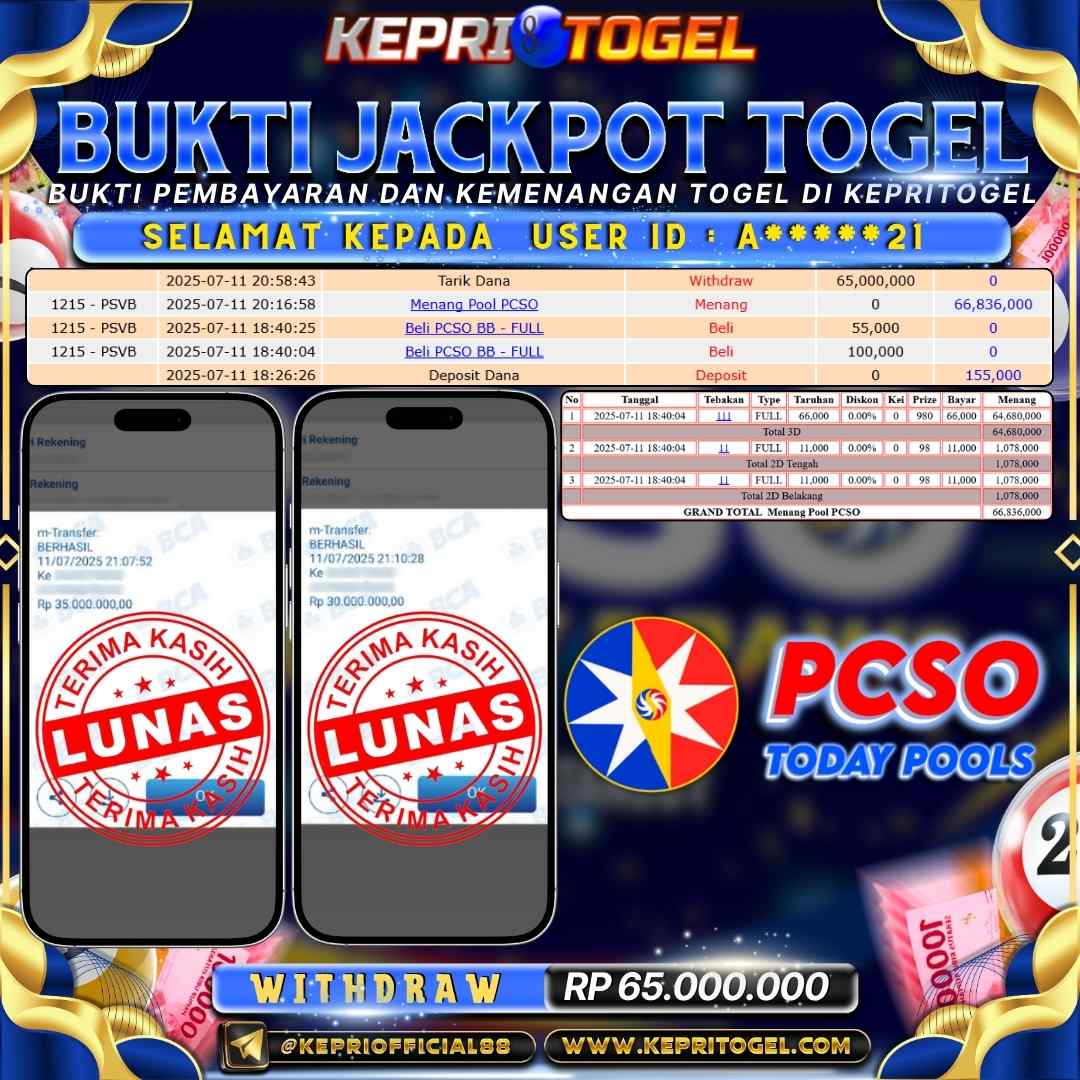 Kepritogel Jackpot Togel PCSO Rp65,000,000