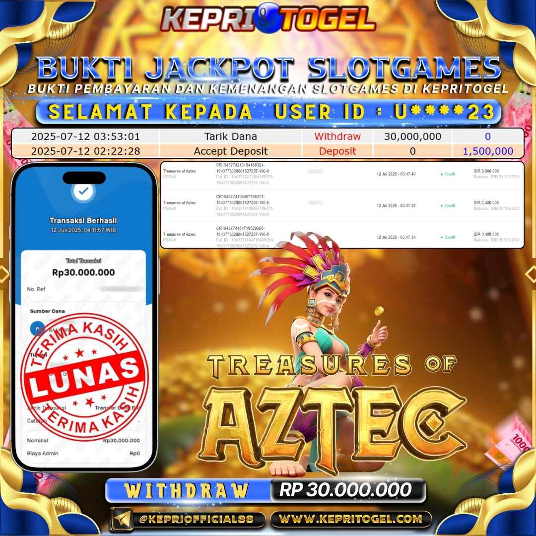 Kepritogel Jackpot Slot Treasures of Aztec Rp30,000,000