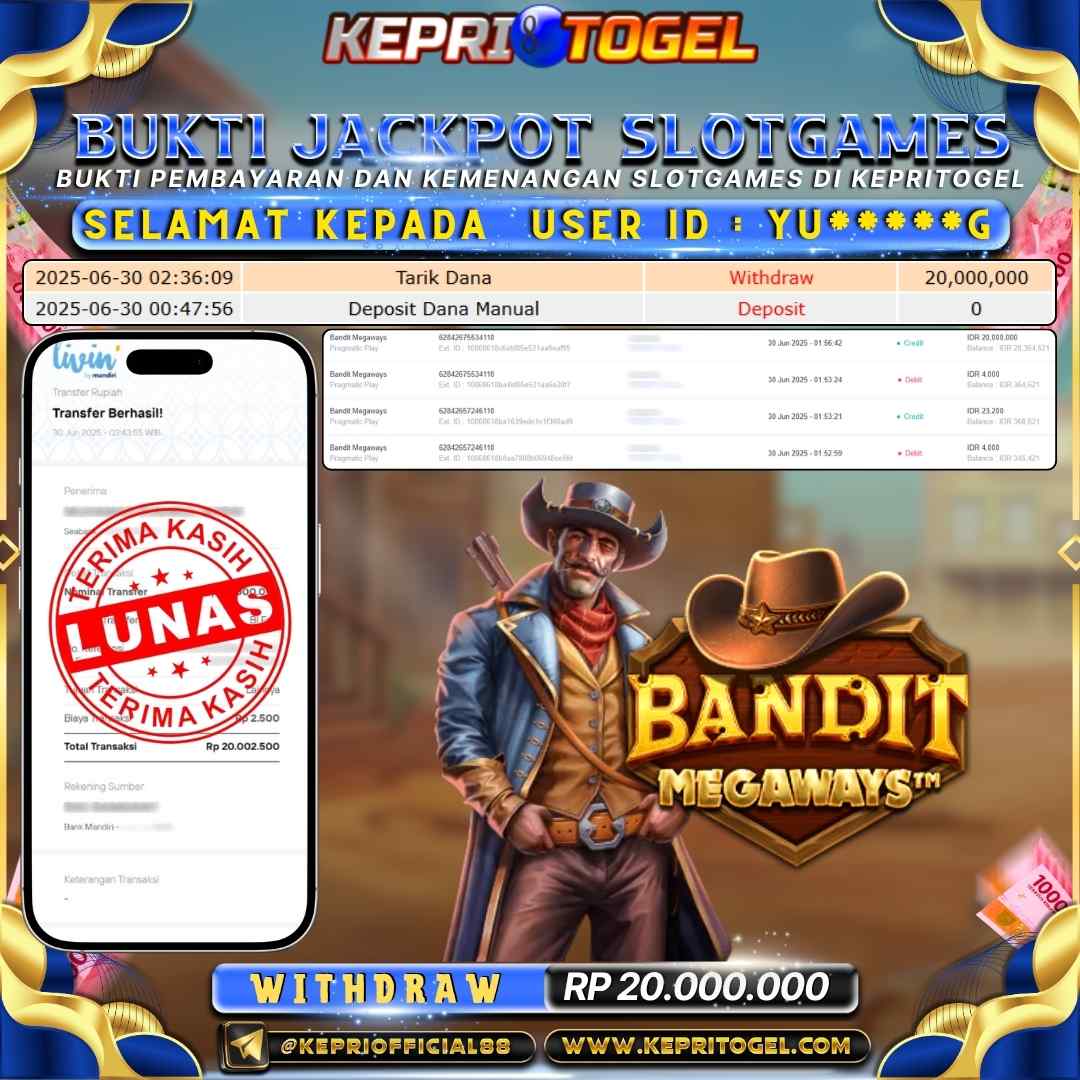 Kepritogel Jackpot Slot Bandit Megaways Rp20,000,000