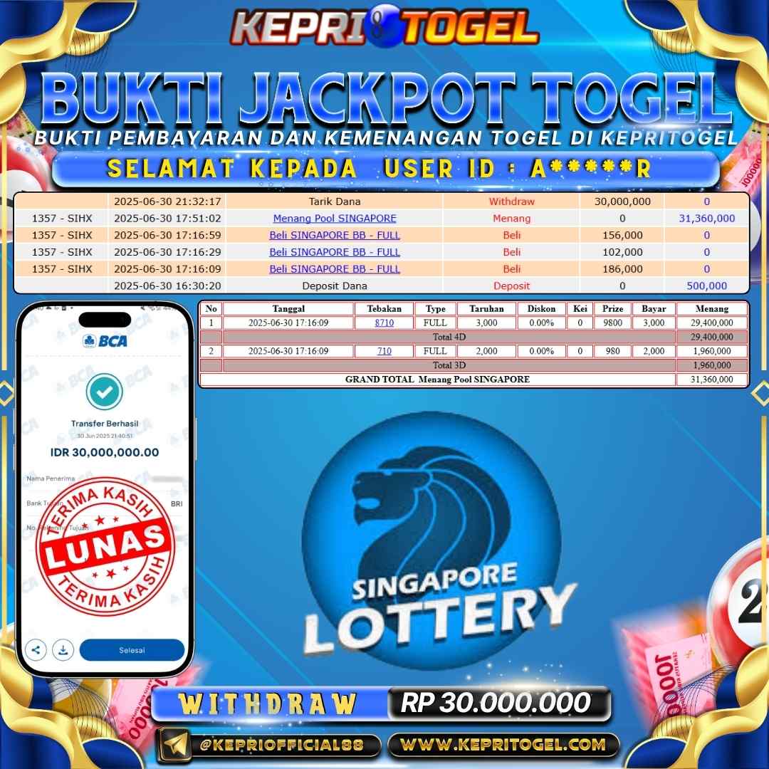 Kepritogel Jackpot Togel SINGAPORE POOLS Rp30,000,000
