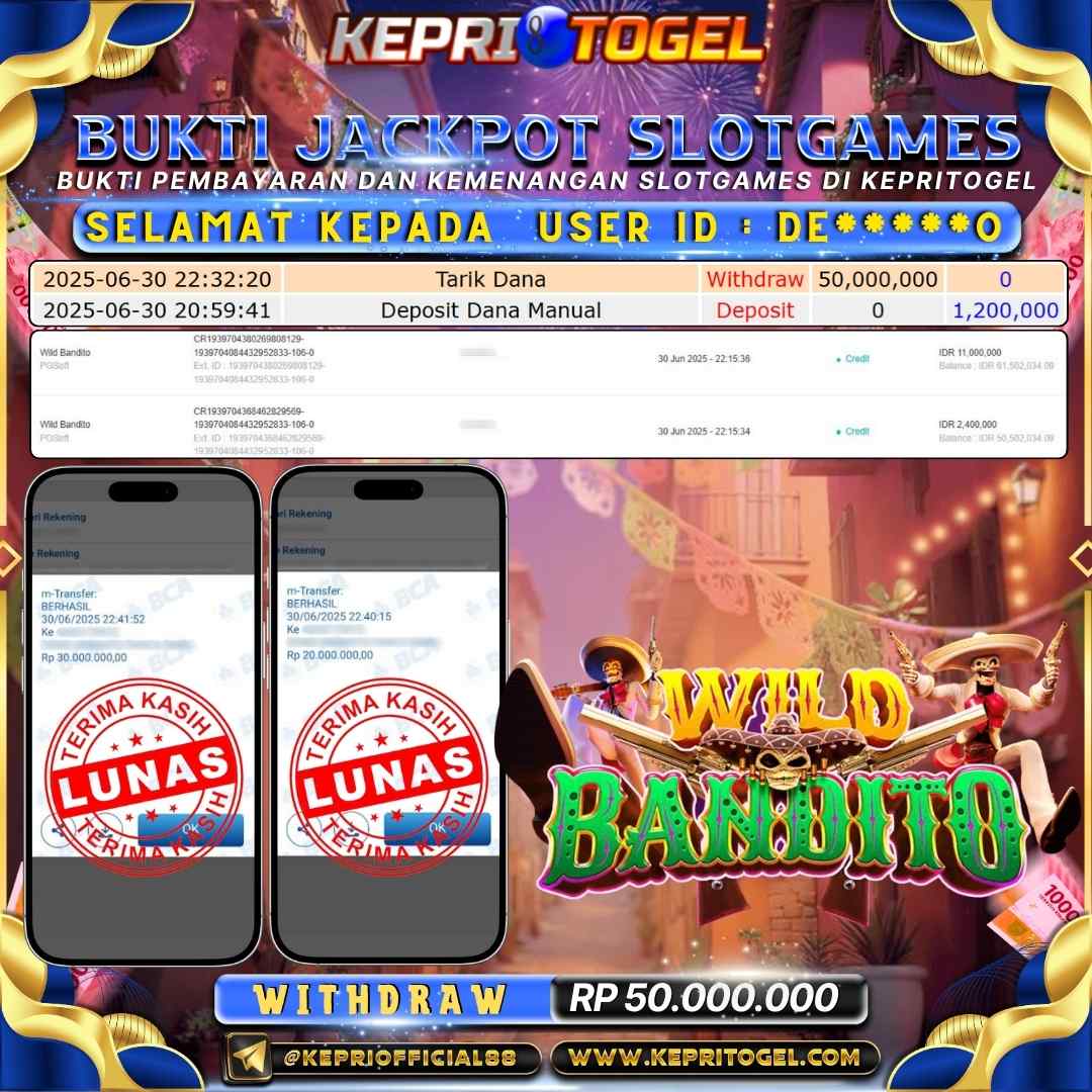 Kepritogel Jackpot Slot Wild Bandito Rp50,000,000
