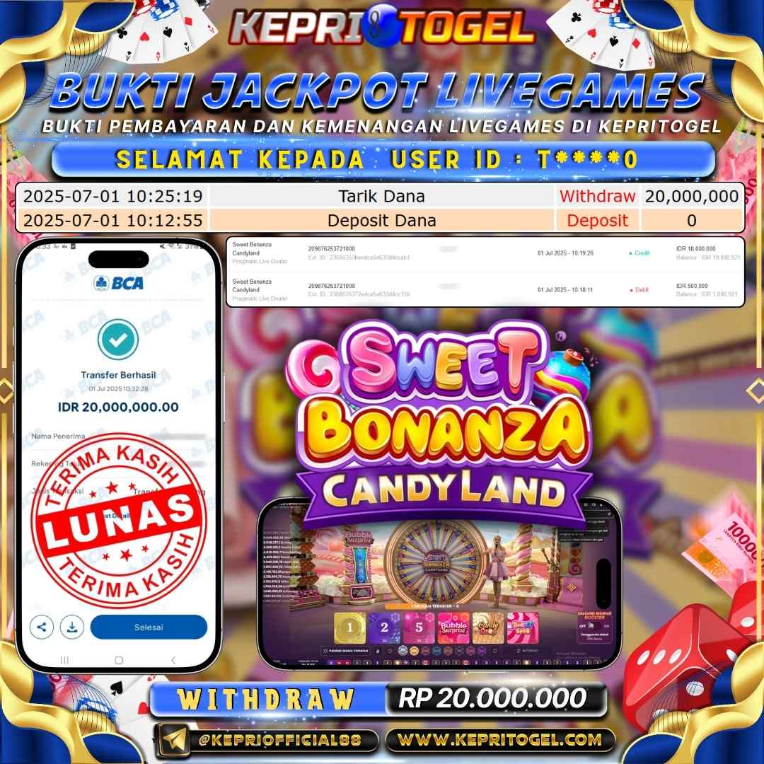 Kepritogel Jackpot Live Dealer Sweet Bonanza Candyland Rp25,000,000