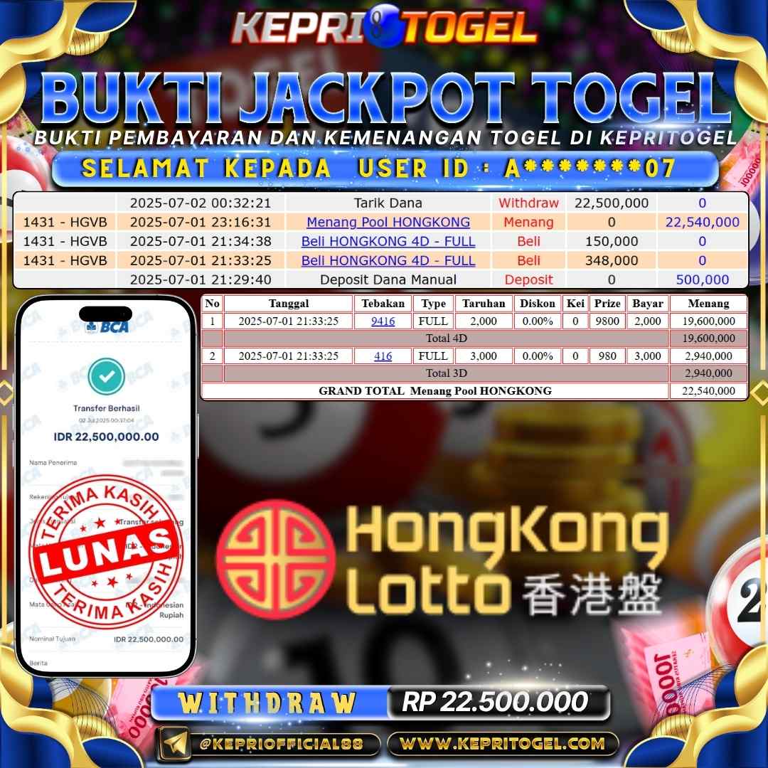 Kepritogel Jackpot Togel HONGKONG LOTTO Rp22,500,000
