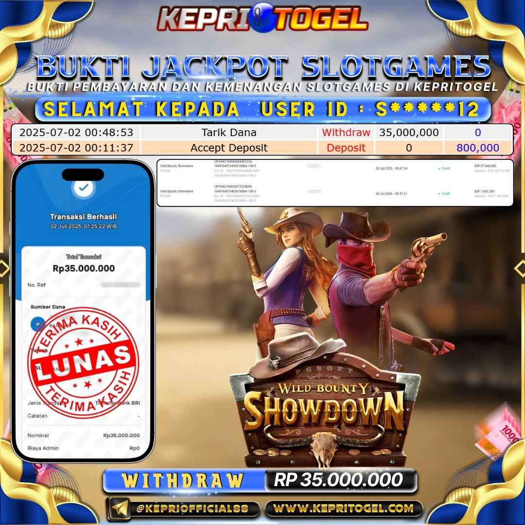 Selamat kepada UserId S*****12 telah berhasil mendapatkan kemenangan jackpot pada permainan Slot Wild Bounty Showdown Kepritogel sebesar Rp35,000,000,- . Kepritogel situs terpercaya sejak dulu hingga saat ini , Untuk kemenangan berapapun pasti akan kami bayarkan . Jangan ragu bermain di Kepri Togel . Kami pihak Kepritogel Menyampaikan terima kasih kepada seluruh member Kepri Togel yang telah Percaya dan setia Bersama kami bermain di Kepritogel hingga saat ini.