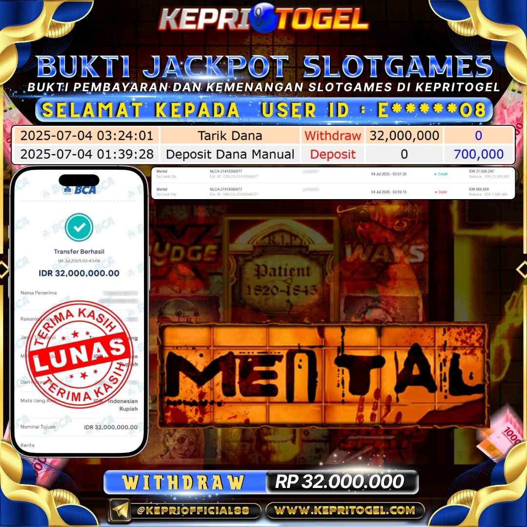 Kepritogel Jackpot Slot Mental Rp32,000,000