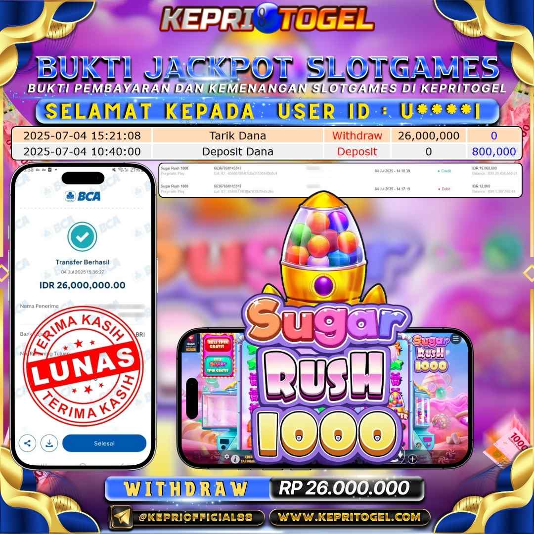 Kepritogel Jackpot Slot Sugar Rush 1000 Rp26,000,000