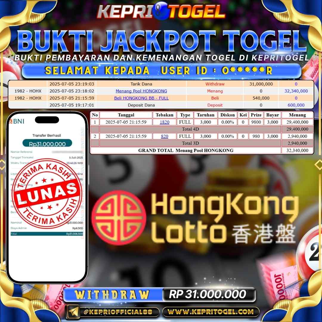 Kepritogel Jackpot Togel Hongkong Lotto Rp31,000,000