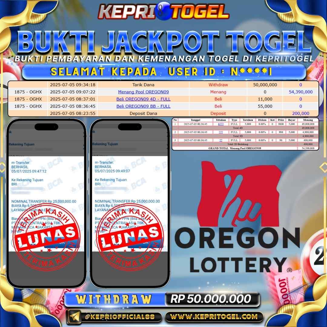 Kepritogel Jackpot Togel OREGON09 Rp50,000,000