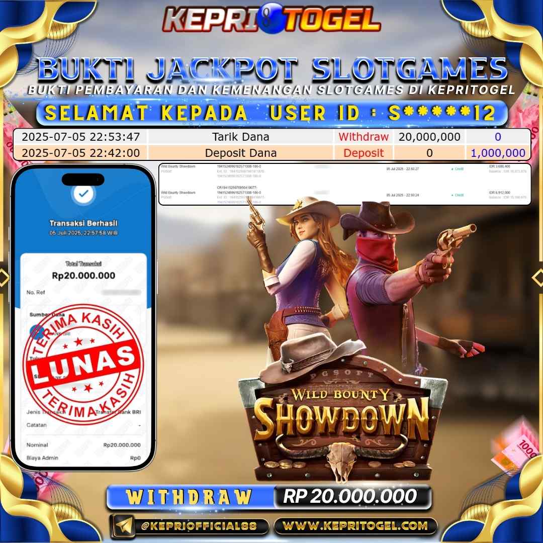 Selamat kepada UserId S*****12 telah berhasil mendapatkan kemenangan jackpot pada permainan Slot Wild Bounty Showdown Kepritogel sebesar Rp20,000,000,- . Kepritogel situs terpercaya sejak dulu hingga saat ini , Untuk kemenangan berapapun pasti akan kami bayarkan . Jangan ragu bermain di Kepri Togel . Kami pihak Kepritogel Menyampaikan terima kasih kepada seluruh member Kepri Togel yang telah Percaya dan setia Bersama kami bermain di Kepritogel hingga saat ini.