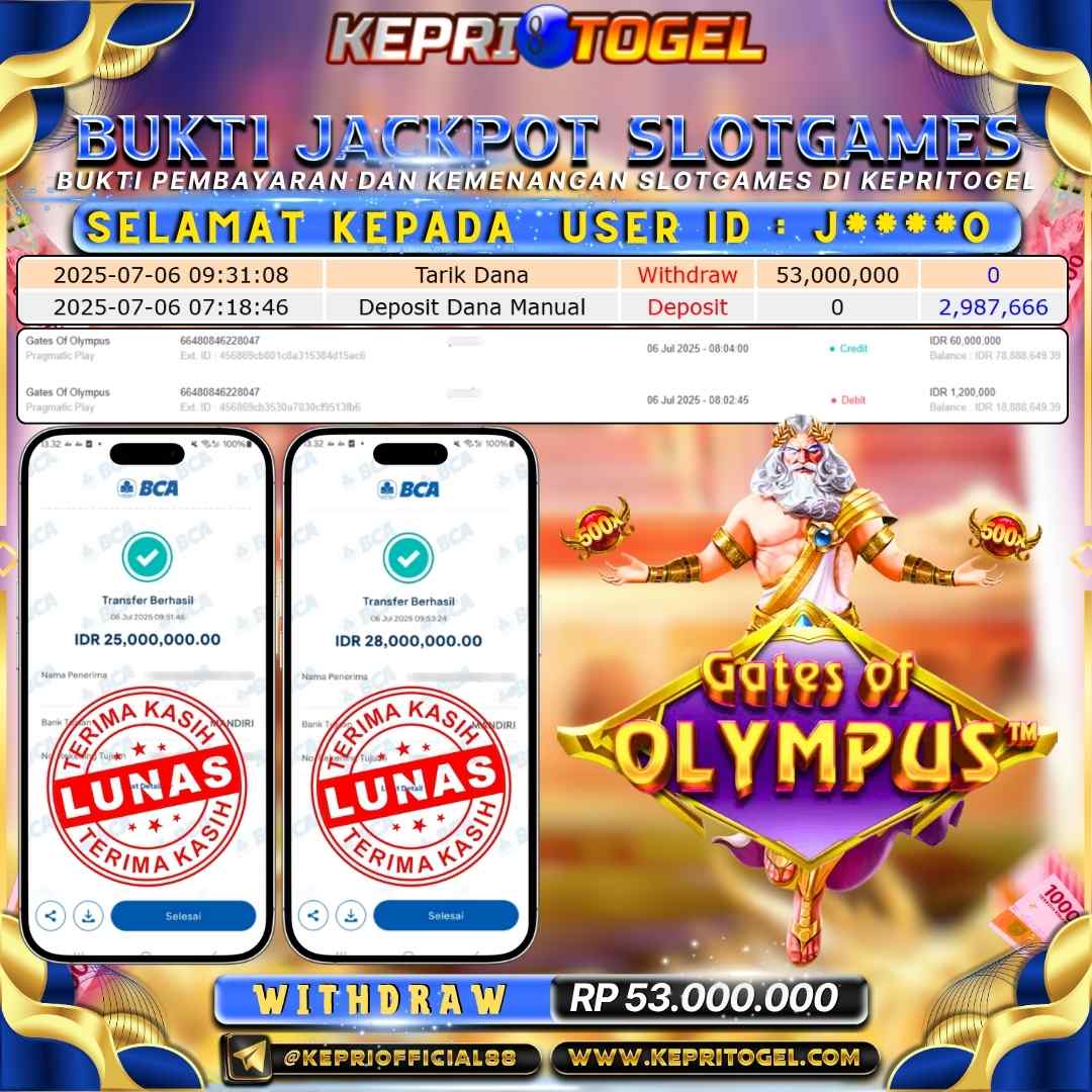 Kepritogel Jackpot Slot Gates of olympus Rp53,000,000