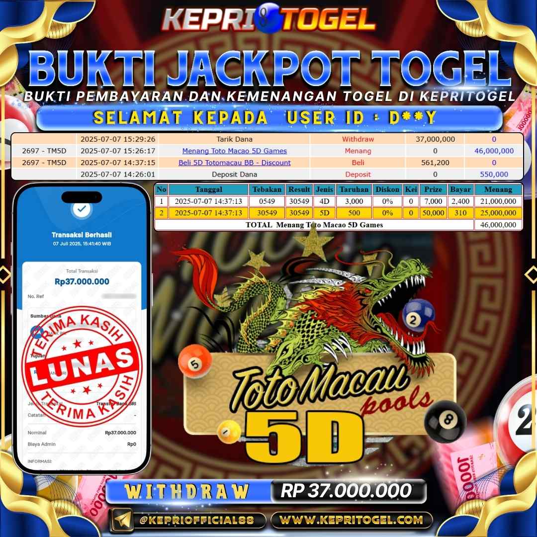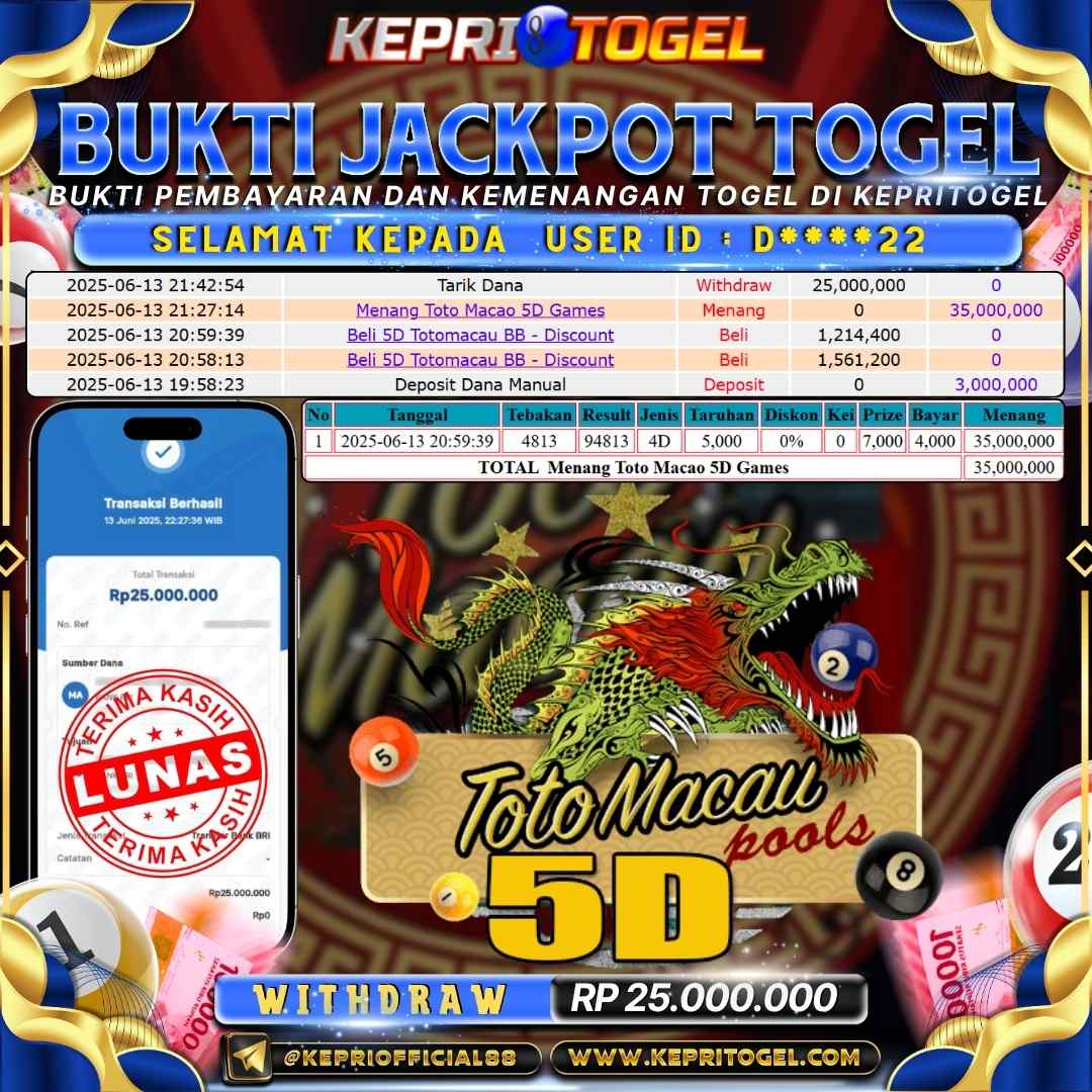 Kepritogel Jackpot Togel Toto Macao 5D Rp25,000,000