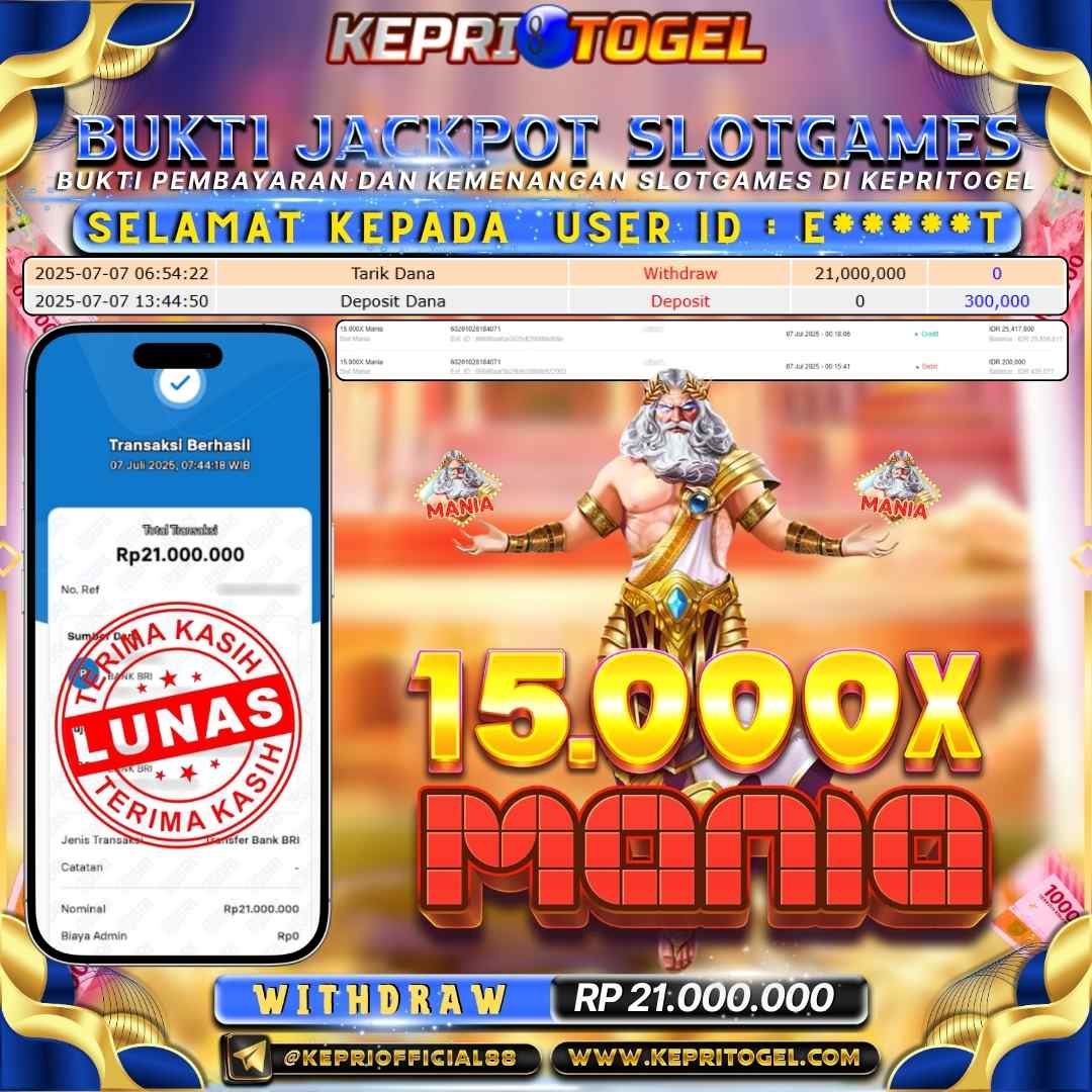 Selamat kepada UserId T******07 telah berhasil mendapatkan kemenangan jackpot pada permainan Slot Gates Of Olympus 1000 Kepritogel sebesar Rp20,000,000,- . Kepritogel situs terpercaya sejak dulu hingga saat ini , Untuk kemenangan berapapun pasti akan kami bayarkan . Jangan ragu bermain di Kepri Togel . Kami pihak Kepritogel Menyampaikan terima kasih kepada seluruh member Kepri Togel yang telah Percaya dan setia Bersama kami bermain di Kepritogel hingga saat ini.