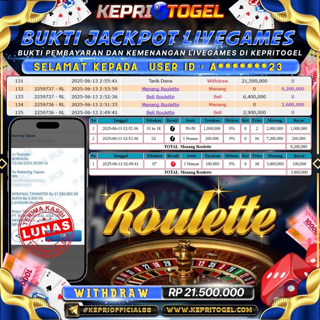 Kepritogel Jackpot Live Game ROULETTE Rp21,500,000