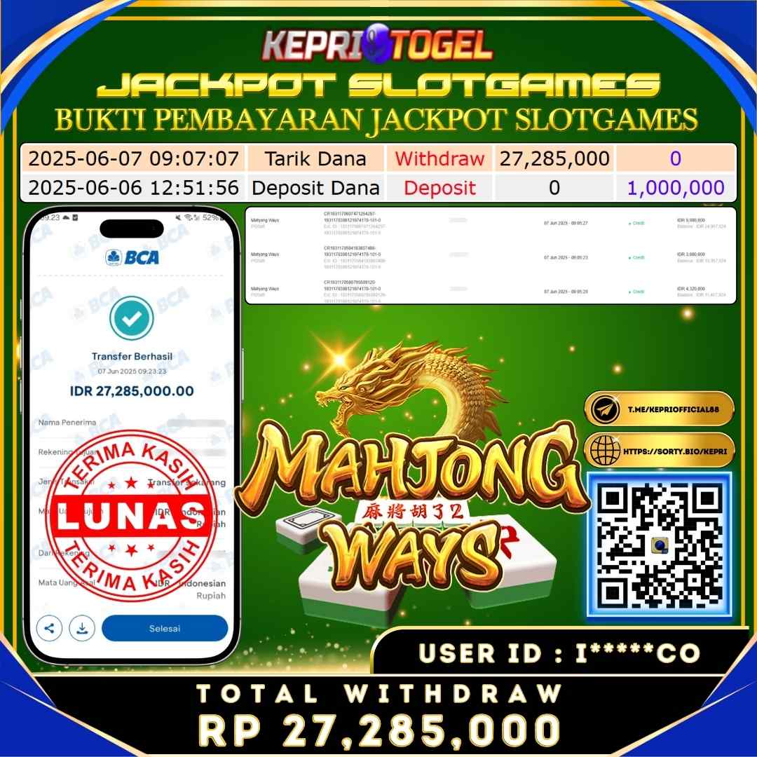 Kepritogel Jackpot Slot Mahjong Ways Rp27,285,000