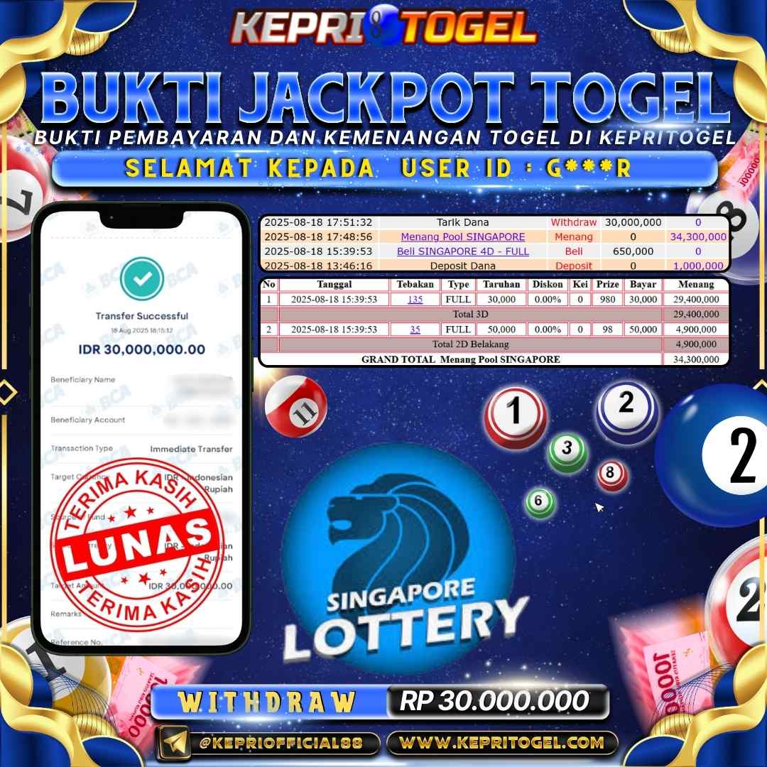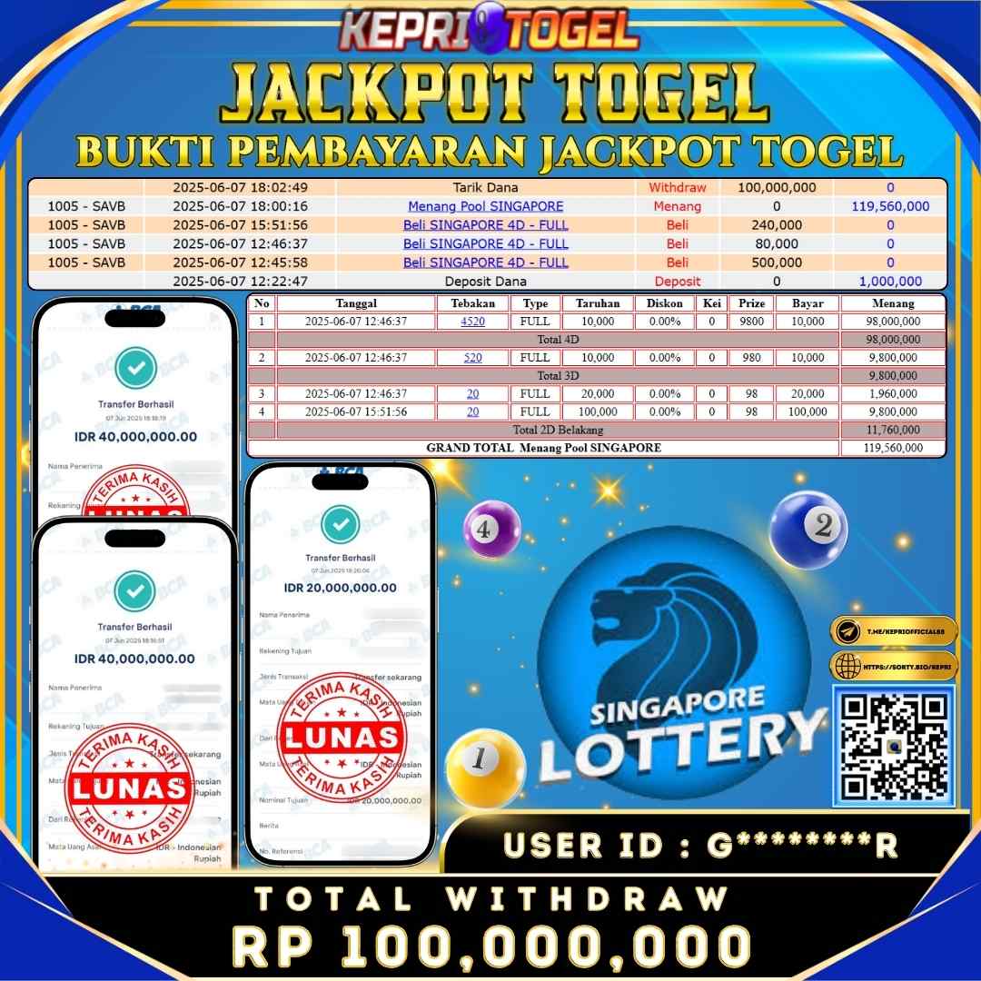 Kepritogel Jackpot Togel SINGAPORE POOLS Rp100,000,000