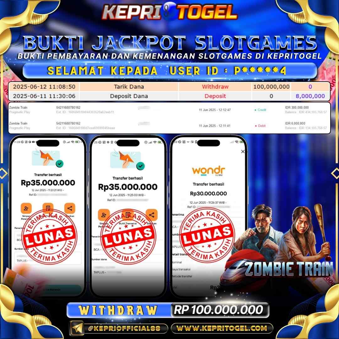Kepritogel Jackpot Slot Zombie Train Rp100.000,000